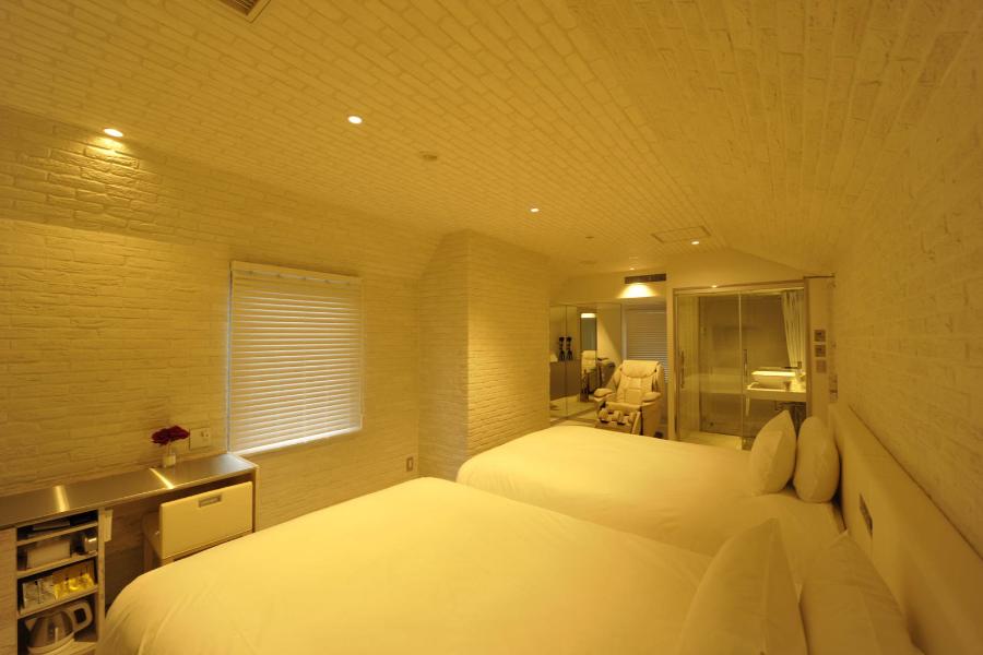 “洞窟(Cave)” まるで石の洞窟にいるような癒しの空間。最高級のマッサージチェアが極上の癒しへといざないます。 ●広さ 25㎡ ●ベッドサイズ 140cm×203cm 2台 英国王室御用達の栄誉を受けた、英国スランバーランド社製の最高峰「グランドスイート」を全客室のベッドに採用。「上質な眠り」をお約束します。 ●Free Wi-Fi完備 ●お洒落なガラス張りのシャワールーム(バスタブなし)。 ●フリーミネラルウオーターサービス