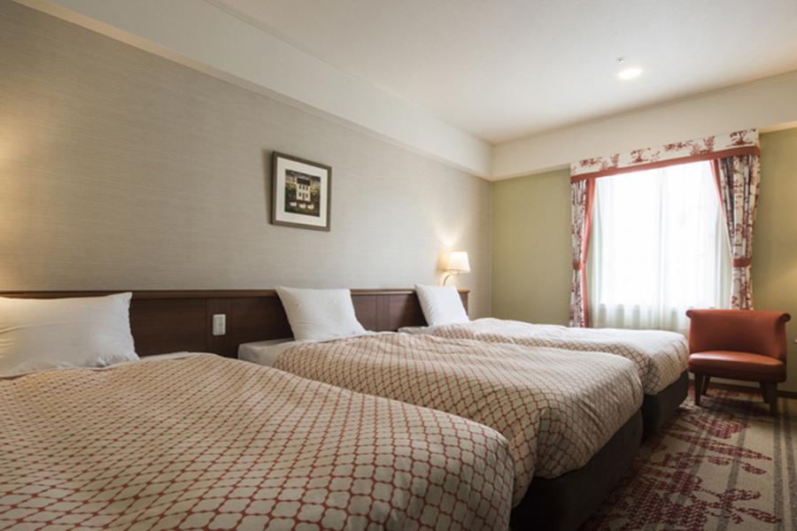 お部屋は2-5Fの「ハリウッドツインルーム」・「パティオツイン」・「トリプルルーム」(各27平米)のいずれかとなり、ホテルの方へおまかせとなります。チェックイン時にホテルにてご確認ください。