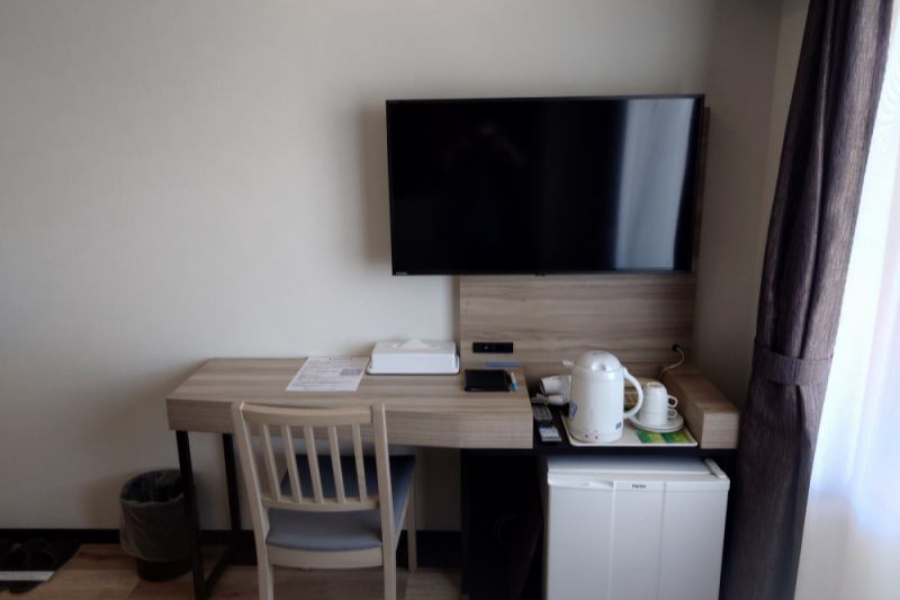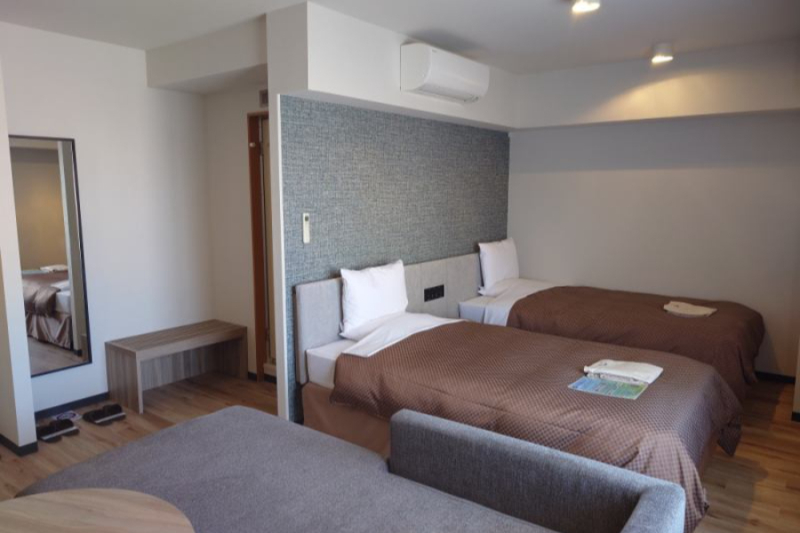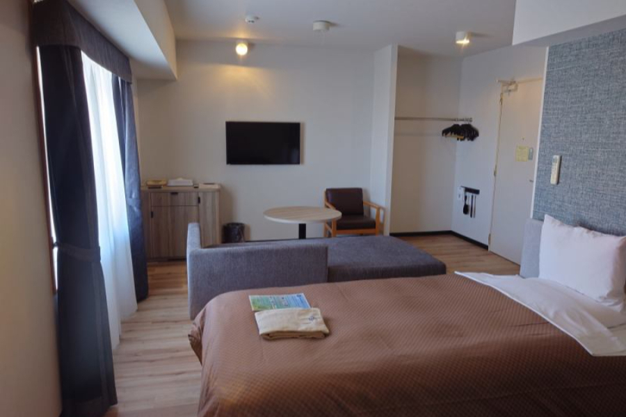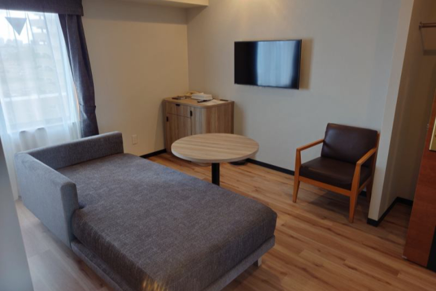・設備:テーブルセット付、テレビ、電話、インターネット接続(LAN形式)、湯沸かしポット、お茶セット、冷蔵庫、ドライヤー、個別空調 洗浄機付トイレ