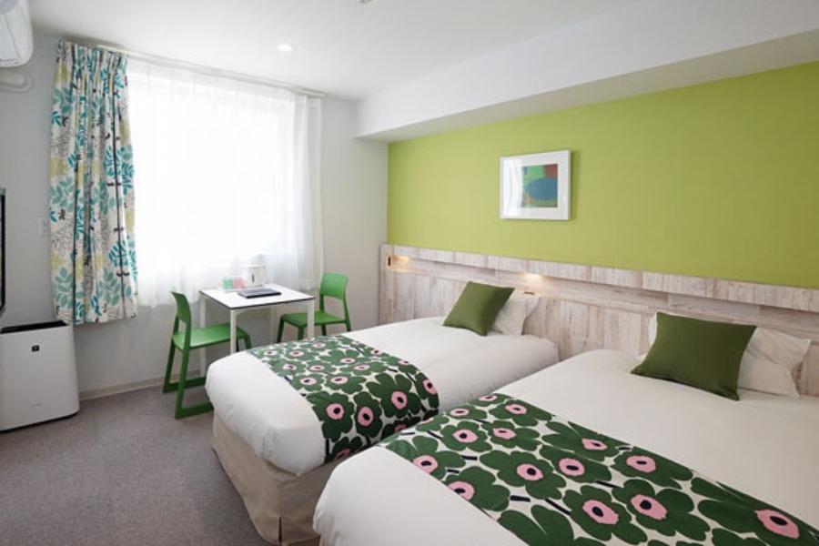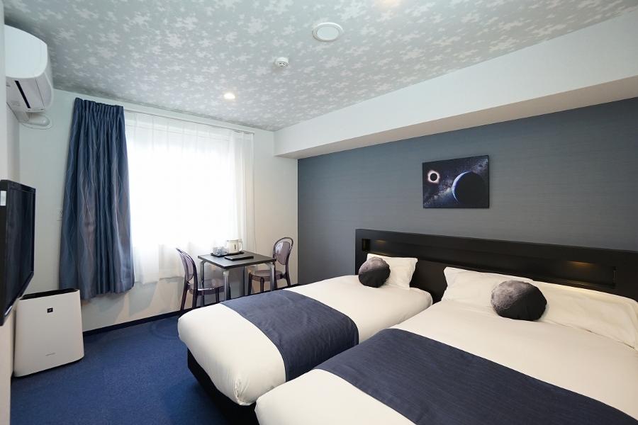 全室禁煙(喫煙ブースは1Fにご用意) ファミリーや女子旅、親子旅にBEST! 2~3名様でご利用可能。 浴室とトイレは別々のセパレートタイプ 面積 : 22㎡ 定員 : 最大3 名 ベッドサイズ : 110cm×195cm , 90cm×195cm , (3名利用時:90cm×180cm) トイレ : あり バス : バス・トイレセパレート ※お部屋の種類の選択不可 ※2名まで添い寝(未就学児のみ)可能 ※2名様以下でご予約された場合、ベッドは2台となります。