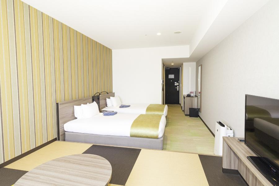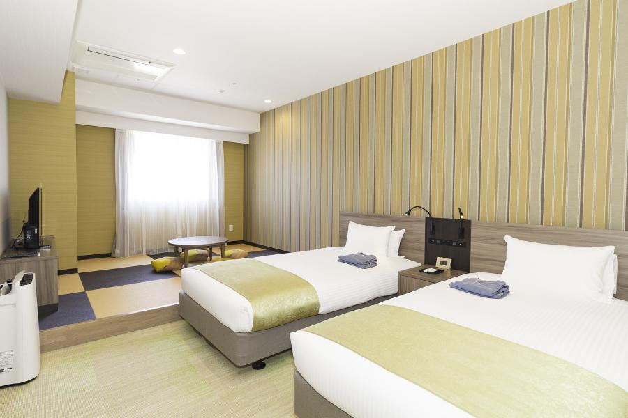 ■広さ 20㎡(洗い場付ユニットバス・トイレ付) ■ベッド 幅110cm×長さ195cm×2台 ■全室禁煙・無料Wi-Fi・加湿機能付空気清浄機・電気ケトル ■添い寝のお子様2名(7歳未満の未就学児)まで無料にてご利用いただけます