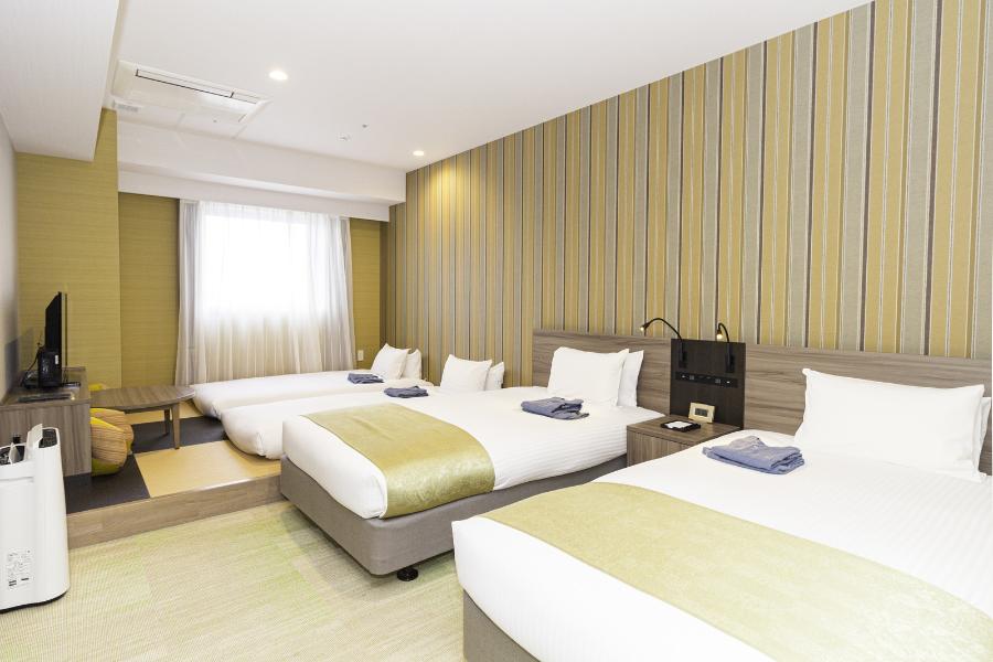 ■広さ 30㎡(洗い場付ユニットバス・トイレ付) ■ベッド 幅110cm×長さ195cm×2台+エキストラマットレス 幅97cm×長さ203cm×2 ■全室禁煙・無料Wi-Fi・加湿機能付空気清浄機・電気ケトル ■添い寝のお子様2名(7歳未満の未就学児)まで無料にてご利用いただけます