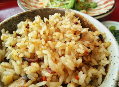 沖縄には、地元ならではの食材を使用した名物の伝統料理が数多くあることで知られています。豚肉やゴーヤ、ハンダマ、島ラッキョウなどの沖縄野菜、もずくなどを用いて作られる名物料理を、ぜひとも堪能しましょう。沖縄で欠かせない料理といえば「ジューシー」です。ジューシーとは、豚の茹で汁や昆布のだしなどを使った炊き込みごはんのことで、お祝いや法事などの席には必ずといっていいほど登場するメニューです。中にはよもぎの葉やかまぼこなどを加えるものもあるようです。沖縄の浦添市にある「琉球麺茉家(まつや)」では、豚の出汁が効いたジューシーを食べることができます。沖縄そばとのセットもあるので、両方食べたい人にはぴったりですね。