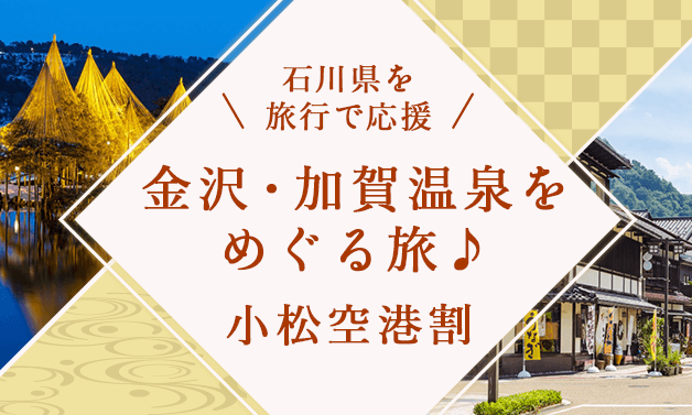 羽田 ⇔ 小松空港間のご利用で、お一人様あたり5,000円の割引が適用された 金額にてツアーに参加できるキャンペーンです。